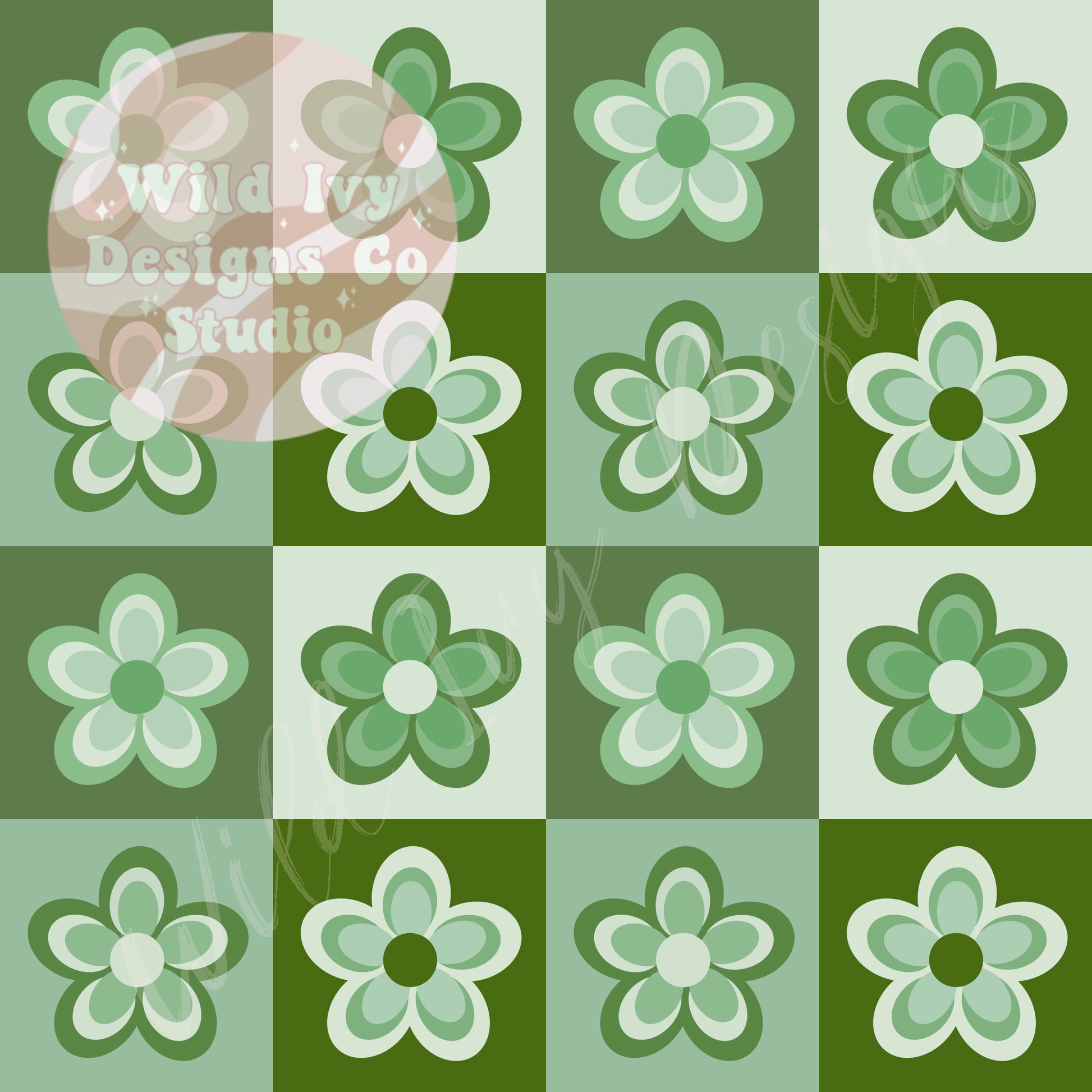 Groovy Floral Checks Greens
